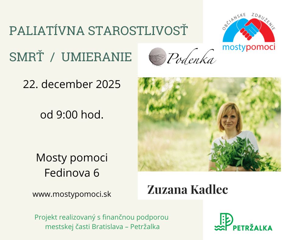 - Zuzka Kadlec z OZ Podenka nám potvrdila účasť a bude s nami na prednáške o paliatívnej starostlivosti, smrti a umieraní